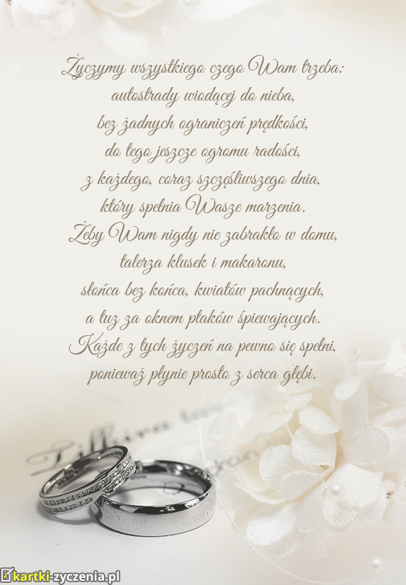 ūeby Wam nigdy nie zabrakło w domu - Gotowa kartka na ślub