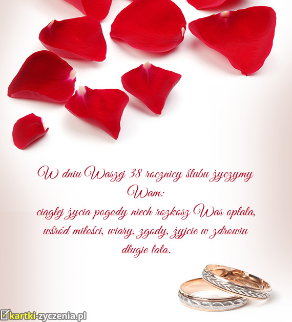 W dniu Waszej 38 rocznicy ślubu życzymy Wam